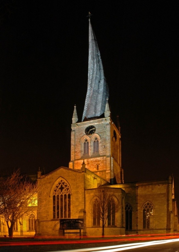 The crooked spire of Chesterfield’s St Marys and All saints church is quite a famous landmark in Chesterfields skyline. How the spire came to be can be quite simply explained by the use of green or unseasoned timber in its construction. However, in common folklore, there are numerous explanations as to why the spire is twisted.
