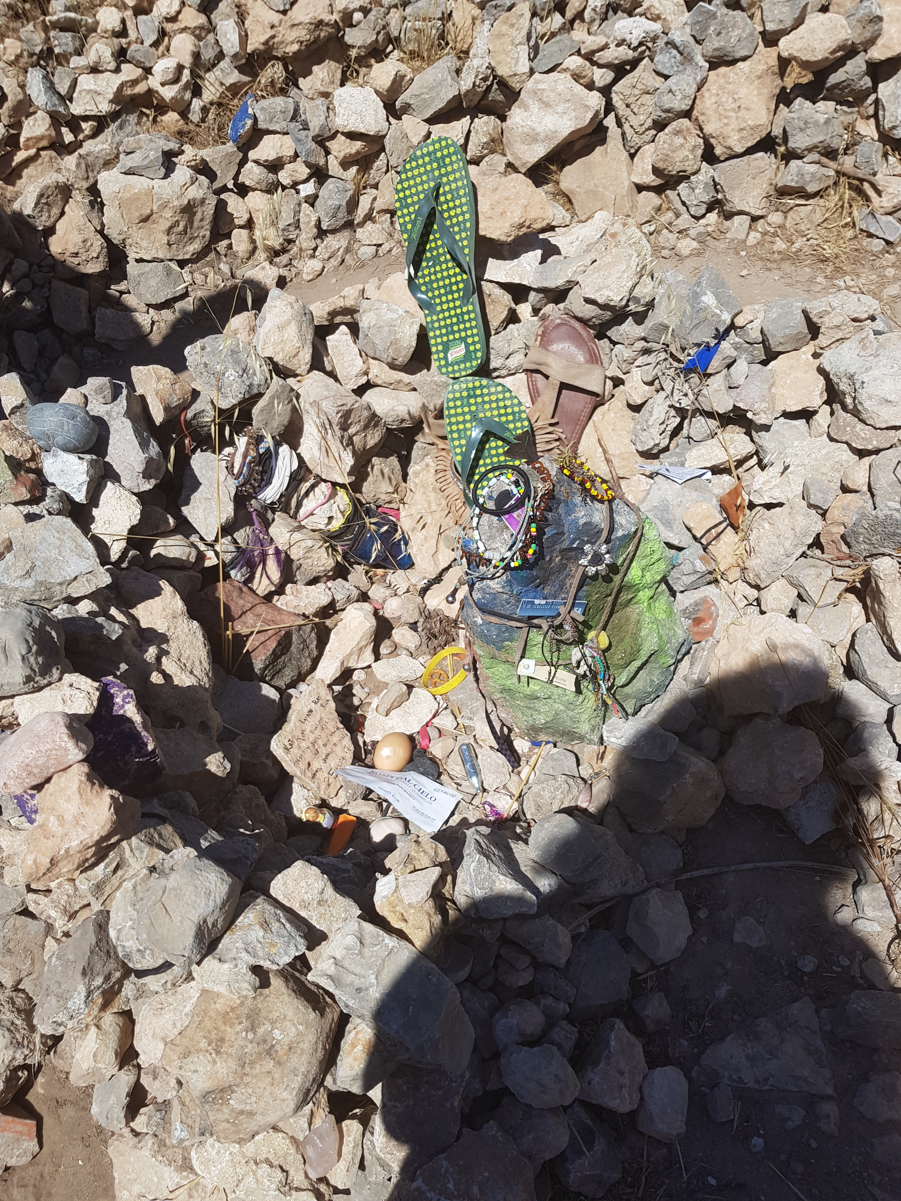 I then walk over to the rocks to see two pink ribbons on the trees either side of what I could only describe as two stone circles. These are not the stone circles you may see in England, these are stone circles that look like they have been made in more recent times and appear to be used for some ritual to this day.