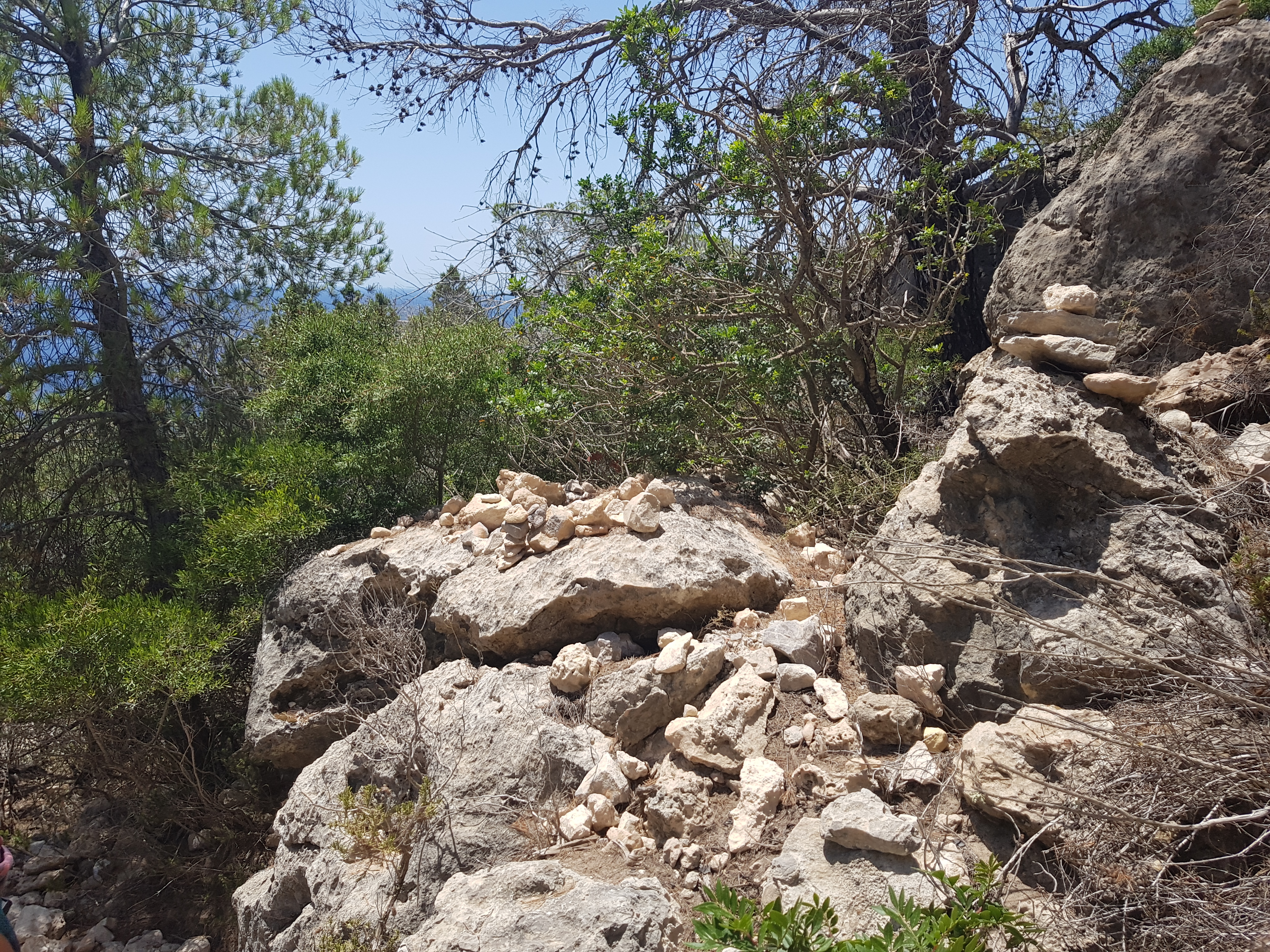 I started to walk and reached the first viewing point looking over the cliff I was taking in by the breath taking views of the sea. A Couple appoached and from the point where im stood i could not see Es Vedra so i asked if they knew where it was. They stated it was further down the track and there was another viewing point and said you must go to see, it is said that it is full of good energy. I was a little suprised by the comment and felt i had needed to see it anyway. I then looked behind me to see what appeared to be rocks stacked. At this point my phone goes which I answer (this is a important part later).