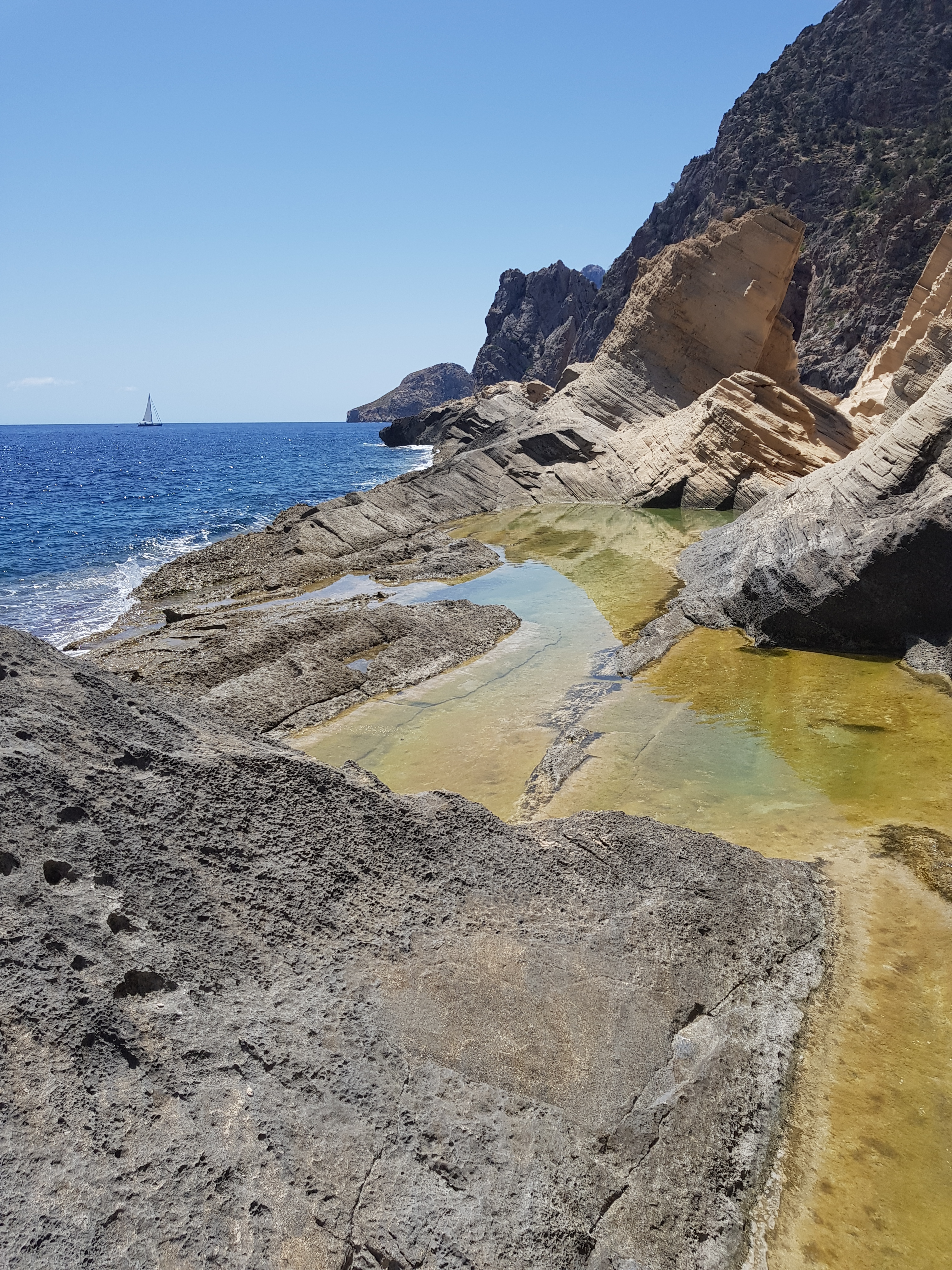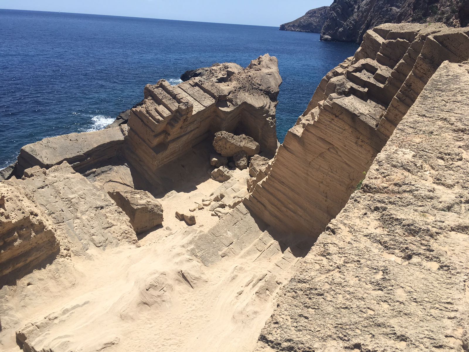 One of the myths is that it was home of the sirens and sea nymphs who tried to lure Ulysses from his cave in Home’s Odyssey and also it is believed to be the birth place and holy island of the Phoenician goddess, Tanit. It is said sacrifices took place on the shores during full moons to honour her. Other stories tell of two brothers who cured there father with a special rock sapphire from the island. To get the rock they had to fight a giant who lived there in one of its many caves. The brothers won.