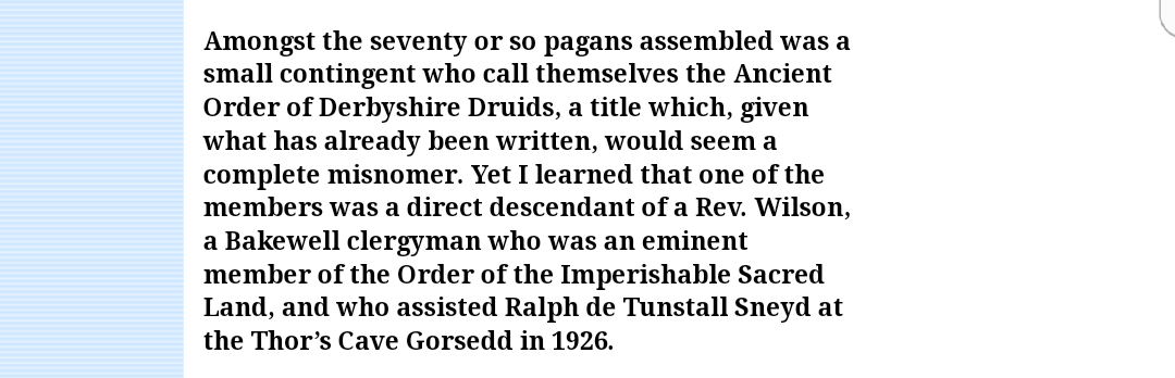 In the 1920’s, a druid from Onecote named Ralph de Tunstall Sneyd, and some of his followers reinstated the Gorsedd ceremony at Thor’s Cave and the