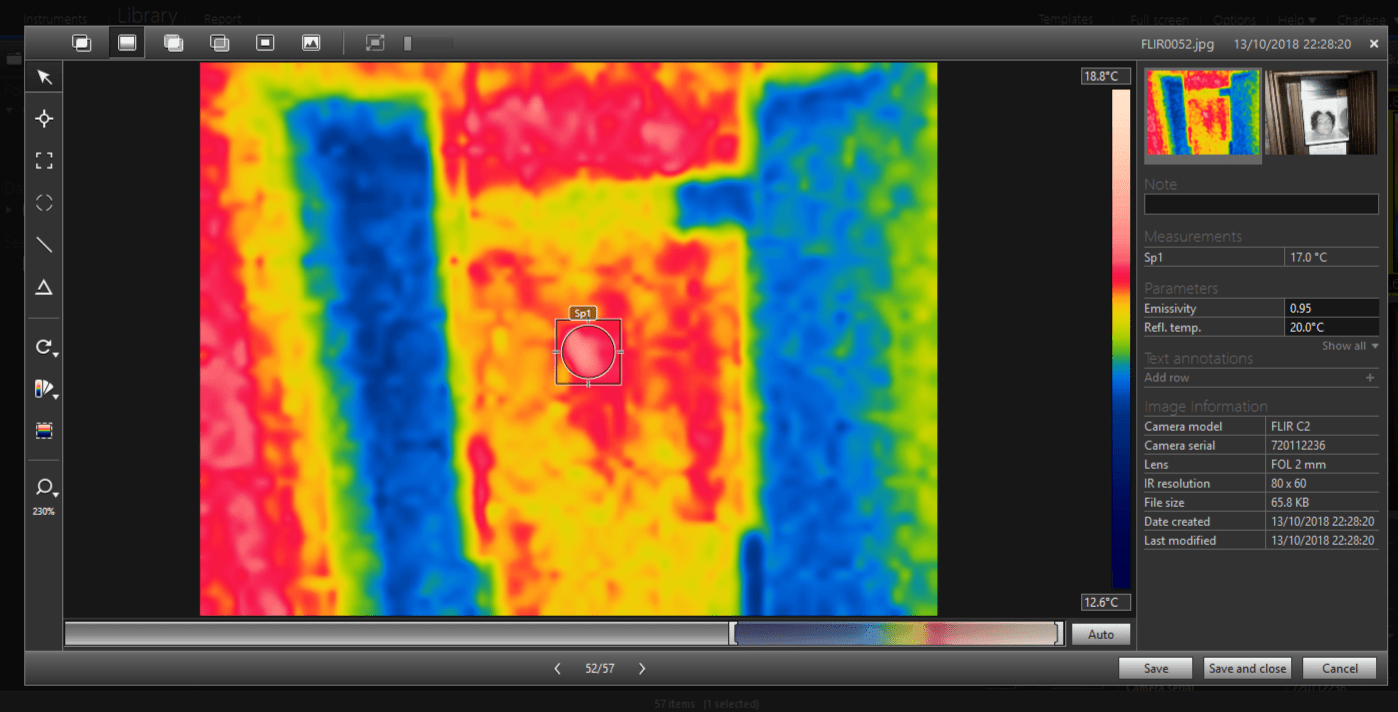 The below images show a two degree drop from the space outside the casing to where the red spot is located within it.