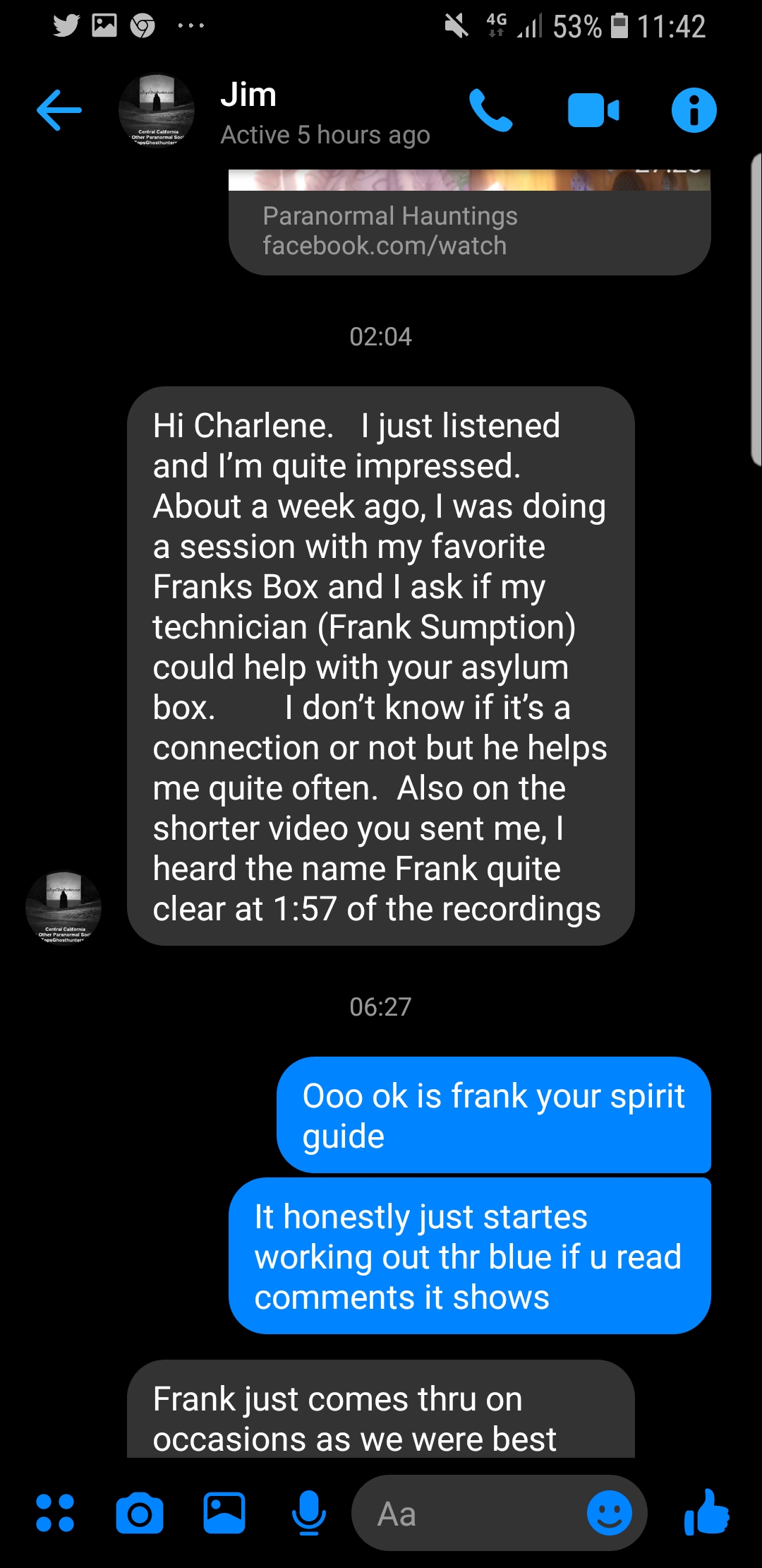 I then decided to google the name and it all clicked into place, Frank Sumpton was the creator of the ‘Franks Box’…..I felt a bit embarrassed that I hadn’t recognized the name….at this point it made sense why Frank may be helping people. Jim told me that Frank was his best friend in life and that they had helped each other in life and investigated the paranormal together for years.