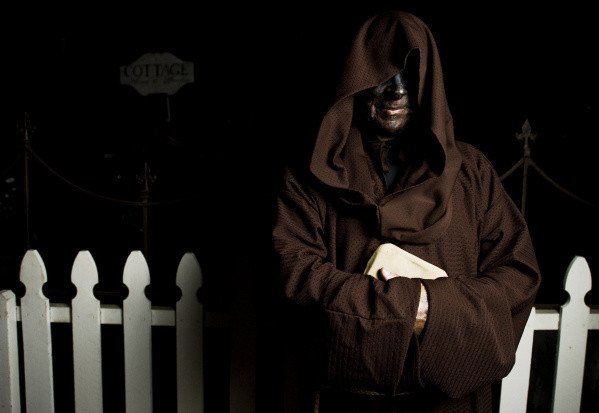 The policeman described the figure as wearing a black ankle length coat and wearing some sort of three cornered hat. With a high collar pulled underneath It. He was unable to see a face.