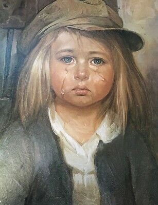 Bruno Amadio, popularly known as Bragolin, and also known as Franchot Seville, Angelo Bragolin and Giovanni Bragolin, an academically trained painter, was working as a painting restorer in Venice, when he created his series that became known as ‘Crying Boys’. These paintings, of which at least 65 were made, all featured young boys, who stared straight out of the picture, with tears welling in their eyes and rolling down their cheeks.
