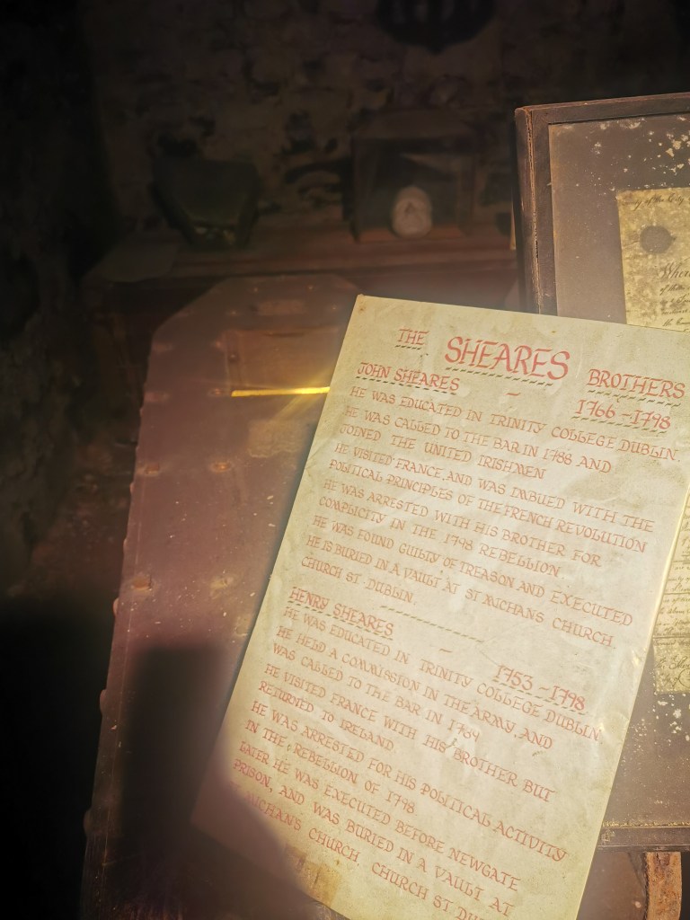 The legendary Sheares brothers are down here, the highly decorated coffins of the Earls of Leitrim and even Wolf Tone’s death mask.