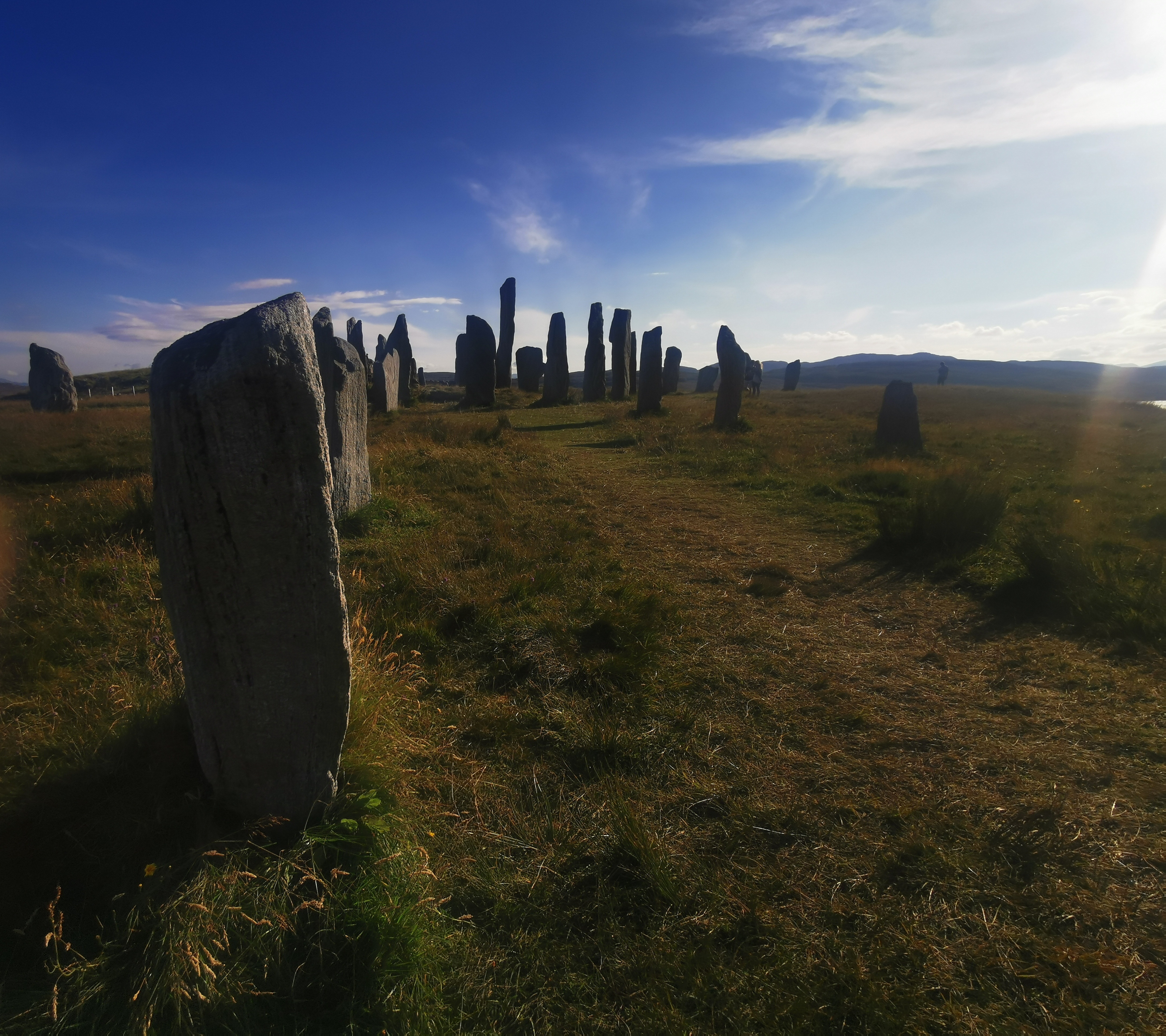 Callanish is said to incorporate many astronomical alignments within its structure. Alexander Thom who investigated the site, found that the Southern stone alignment, points to the setting Midsummer full moon behind Mount Clisham.The stones are known as ‘Fir Bhreig’ which in Gaelic means ‘the false men’ and legend has it that the stones were giants that were turned into stone by St Kieran because they would not convert to Christianity.