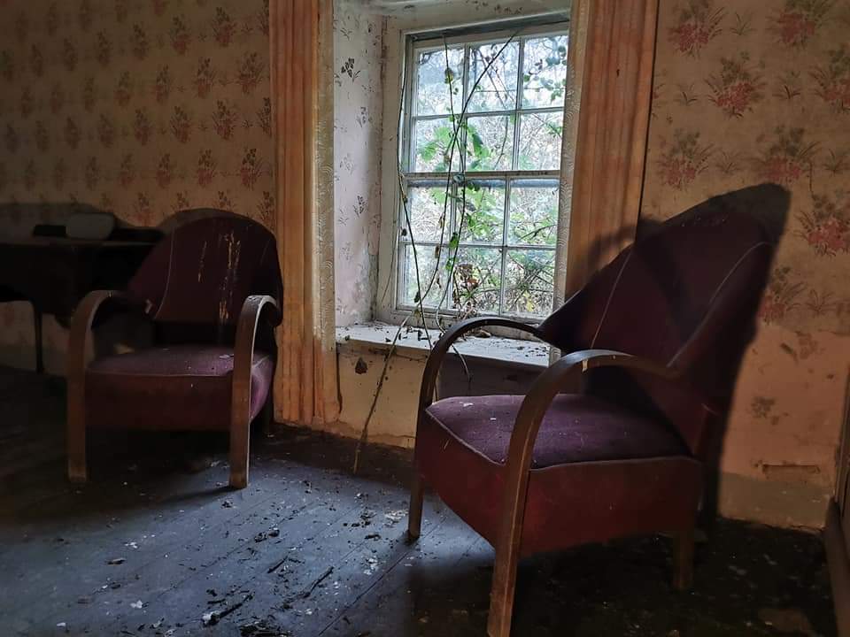 A Few urban explorers I know of have fled the location in terror after they heard noises coming from upstairs. It was mentioned they actually thought a sheep had some how managed to get up stairs only for them to go up to find nothing. Another urban explorer took an image of what looks like a face on a door.. Rachel and I tried to debunk and recreate the image presuming it was just a perfectly timed smear on the glass that produced it..