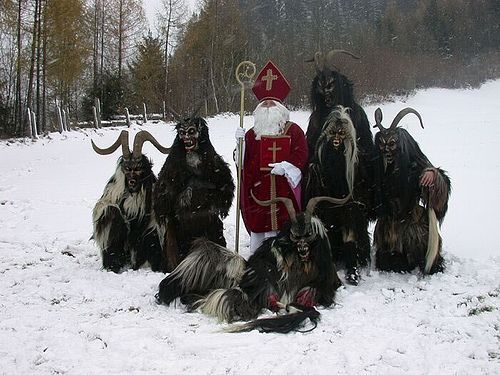 Krampus, in central Europe is a popular legend, a half goat, half demon monster and is the devilish companion of St Nicholas.