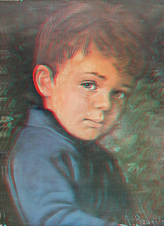 After the end of the Second World War, artist Bruno Amadio (also known as Giovanni Bragolin) began to paint portraits of Italian orphans crying as souvenirs for tourists. Over time the mass-produced prints of his paintings became increasingly popular, particularly in England. That is until the 1980’s when people began to say that the prints were cursed.