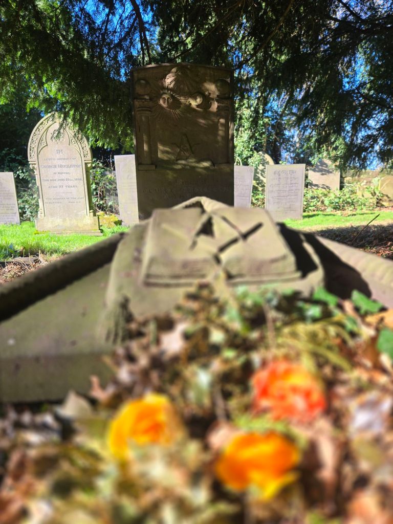 Oddly, straight in front of this grave is a freemasons grave, which I don’t think I’ve ever seen a freemasons grave, and if I have, it’s nothing like this one… the symbolism is beautiful.